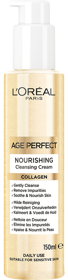 Vyživujúci čistiaci krém Age Perfect od L'Oréal Paris s obsahom kolagénu jemne čistí, pomáha odstraňovať nečistoty, upokojovať a vyživovať pleť. Vhodný aj pre citlivú pleť a denné použitie.