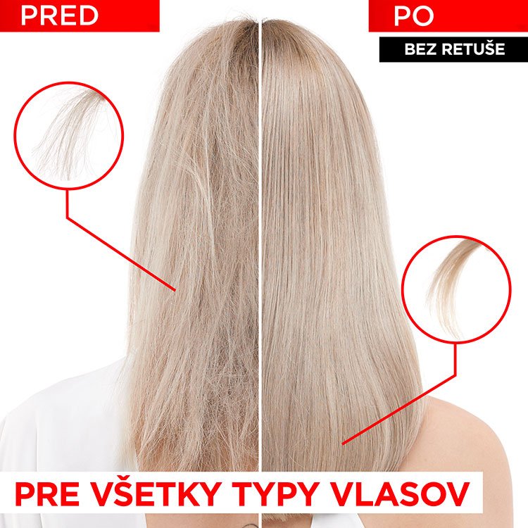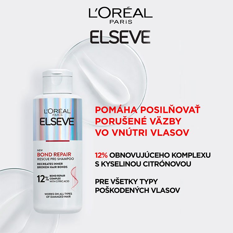 Historicky po prvý raz predstavujeme najintenzívnejšiu obnovu vlasov od L´Oréal Paris. Obnovujúca predšampónová starostlivosť s kyselinou citrónovou, preniká pod povrch vlasového vlákna až do jeho stredu, kde napomáha naprávať a posilňovať oslabené vlasové väzby. Vlasy sú okamžite silnejšie, vlasové väzby sú obnovené (+82% obnovy*), bez viditeľných známok lámavosti (-98% lámavosti**), a lesklejšie (+90% lesku***). Vhodné pre všetky typy poškodených vlasov. * Inštrumentálny test po 5 aplikáciách predšampónovej starostlivosti + šampónu + balzamu. **Inštrumentálny test po 6 aplikáciách predšampónovej starostlivosti + šampónu + balzamu. ***Inštrumentálny test predšampónovej starostlivosti + šampónu+ balzam.