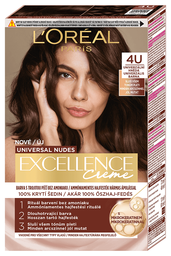 L'Oréal Paris Excellence Creme Universal Nudes permanentná farba s trojitou starostlivosťou.
