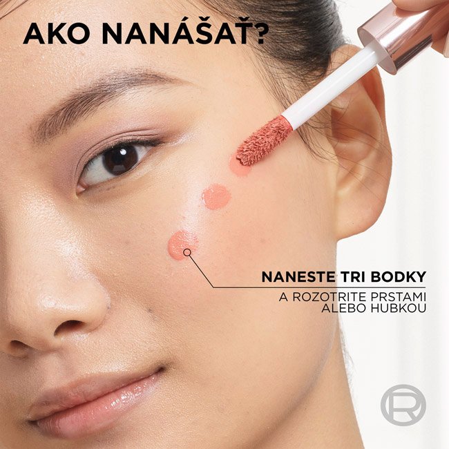 Tekutú lícenku naneste a rozotrite. Následne môžete pridať ďalšiu vrstvu, kým nedosiahnete požadované krytie.