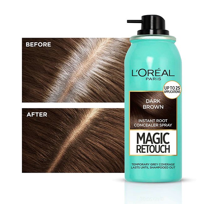 Sprej na vlasy na okamžité zakrytie odrastov L'Oréal Paris Magic Retouch je dočasný farebný sprej v niekoľkých prírodných odtieňoch, ktorý v jedinom kroku prekryje šedivé či farebné odrasty. Tajomstvom spreja je farebný pigment, ktorý dokonale priľne k vlasu a bezpečne vydrží až do ďalšieho umytia šampónom. Vďaka spreju L'Oréal Paris Magic Retouch dosiahnete okamžité prekrytie šedín už za pár sekúnd! Magic Retouch po aplikácii zjemňuje farebný prechod vlasov a dokonale k nim priľne. Zároveň rýchlo zasychá a dodáva vlasom jemnú textúru.