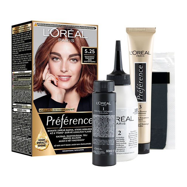 L'Oréal Paris Préférence je obohatená o technológiu Fade-Defying SYSTEMTM. Vysoká koncentrácia dlhotrvajúcich farbiacich zložiek v kombinácii s novou olejovo-gélovou textúrou pre žiarivú farbu s vysokým leskom bez vyblednutia až na 8 týždňov*. Kryje až 100 % šedín. V balení sa nachádza záverečná starostlivosť na ochranu lesku obohatená o UV filter s vitamínom E. * Inštrumentálny test.