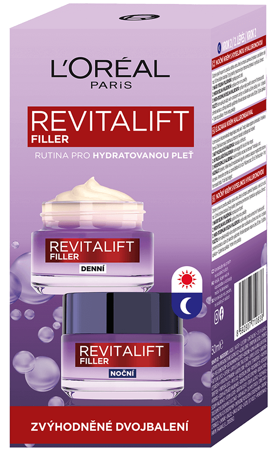 L'Oréal Paris prináša renováciu svojho zloženia, ktoré teraz obsahuje pokrokovú technológiu: kyselinu hyalurónovúcx s dlhodobým účinkom. Nové zloženie vytvára na povrchu pokožky odolnú vrstvu, ktorá je schopná uzamknúť hydratáciu v pleti až na 7 dní*. Pokožku tak intenzívne hydratuje. Zloženie ďalej preniká do pokožky** na vyplnenie vrások a obnovenie plnosti pleti. Účinné zloženie obsahuje 3 typy kyseliny hyalurónovej pre intenzívnu hydratáciu a vyplňujúcu účinnosť: • Makrokyselina hyalurónová: hydratuje povrch pleti. • Mikrokyselina hyalurónová: vypĺňa vrchnú vrstvu pokožky. • Mikroepidermálna kyselina hyalurónová: vypĺňa vrásky zvnútra a intenzívne** hydratuje pleť. * Klinické testovanie vrások na čele, 58 žien, 5 týždňov aplikácie + 1 týždeň bez aplikácie. ** Vrchné vrstvy pokožky