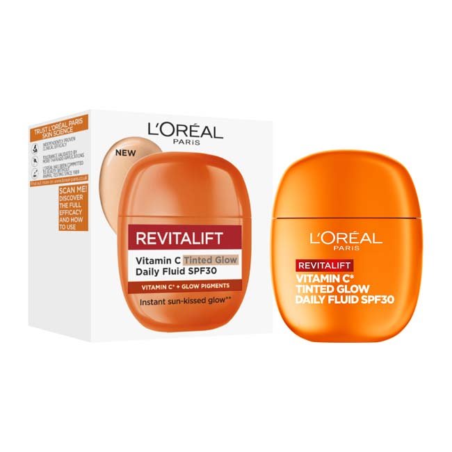 Tónovací denný fluid Revitalift Vitamín C od L'Oréal Paris s SPF30 chráni a rozjasňuje pleť v každej situácii. Vysoko účinné tónovacie zloženie obsahuje Vitamín C* na rozjasnenie a zjednotenie pleti a redukciu viditeľnosti jemných vrások, Vitamín E, ktorý chráni pokožku pred oxidačným stresom a starnutím. Denný fluid je zároveň obohatený o 4 % tónovacích pigmentov, ktoré prispievajú k rozjasneniu pleti. UV filtre chránia pred UVB a UVA žiarením a napomáhajú zjemňovať jemné vrásky spôsobené slnečným žiarením. Ultraľahký fluid, ktorý nemastí, rýchlo sa vstrebáva a je tiež perfektný ako základ pod make-up. *Derivát Vitamínu C
